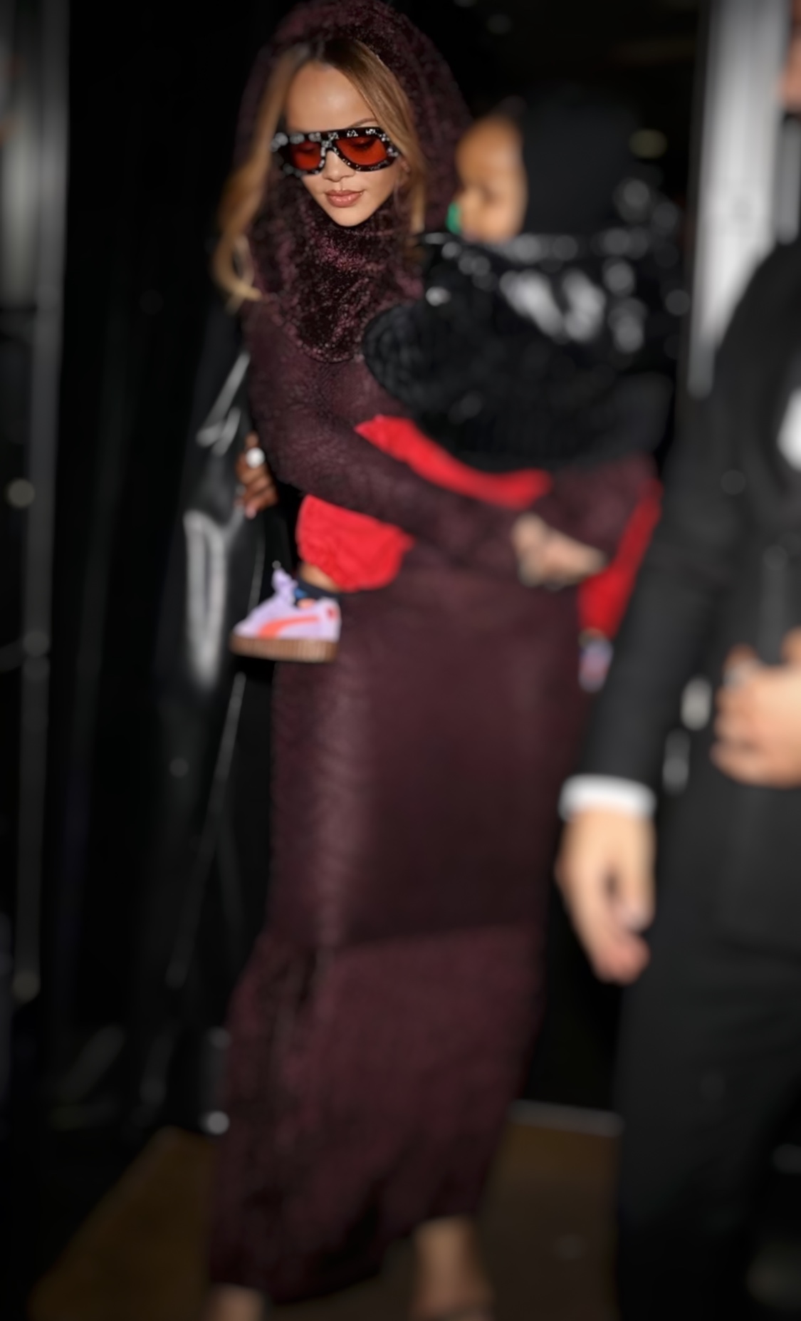 I'm crazy about this outfit worn by RIhanna in my Paris. She is with her little boy, surrounded by paparazzi, as always.