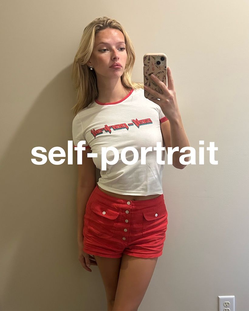 The announcement arrived on Instagram, where Apple shared a series of self-portraits she shot herself. Not the polished sparkle of a studio editorial, but authentic images with a self-expressive energy that speaks directly to her generation. It’s not about seeming untouchable, but about connecting—and that’s exactly the spirit Self-Portrait set out to capture.